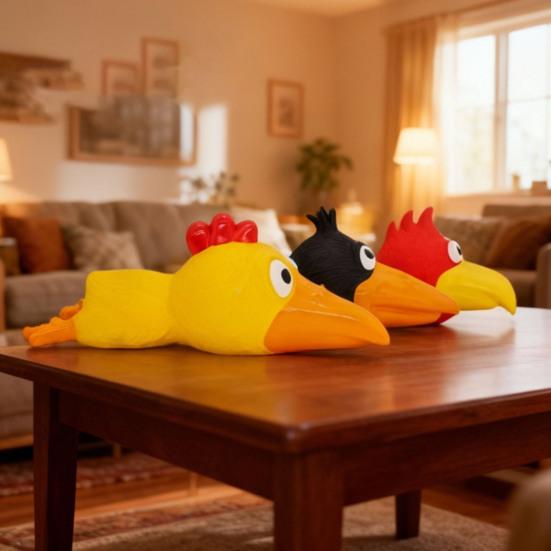 Driedimensionale Schattige Vorm Verhoogt Speelsheid: Met een fel, opvallend kippenontwerp met een groot hoofd en een lange bek is dit speelgoed gemakkelijk voor honden om op te pakken. Het stimuleert hun natuurlijke jachtinstincten, moedigt actief spel en verkenning aan.. De levendige tekenfilmstijl houdt huisdieren betrokken en vermaakt, waardoor elke speelsessie leuker en interactiever wordt.