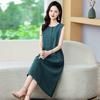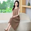 Mom's Trendy Plaid Dress: Literary, Stylish, Sleeveless, Long, Slimming, Loose Fit.