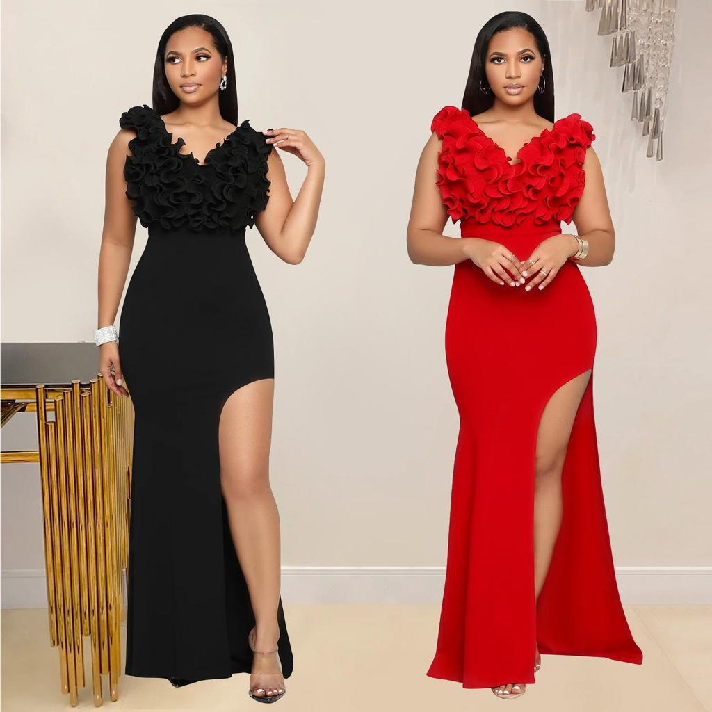 V-neck Sleeveless Long Split Dress - European & American Fashion Women's Clothing (C7013)