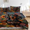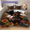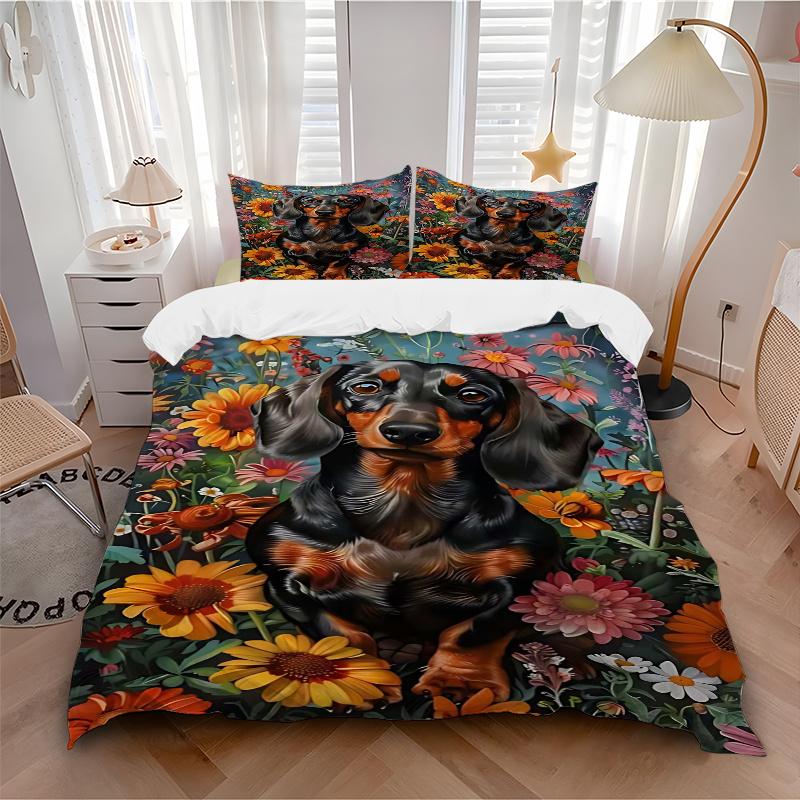 3pcs Dachshund Dog Floral Garden Bedding Set, Includes One Quilt Cover and Two Pillowcases (No Core), Anime Cartoon Design, Polyester Fabric
