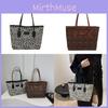 Spacious Retro Canvas Tote Bag For Women In Pink White Brown Fashion Colors