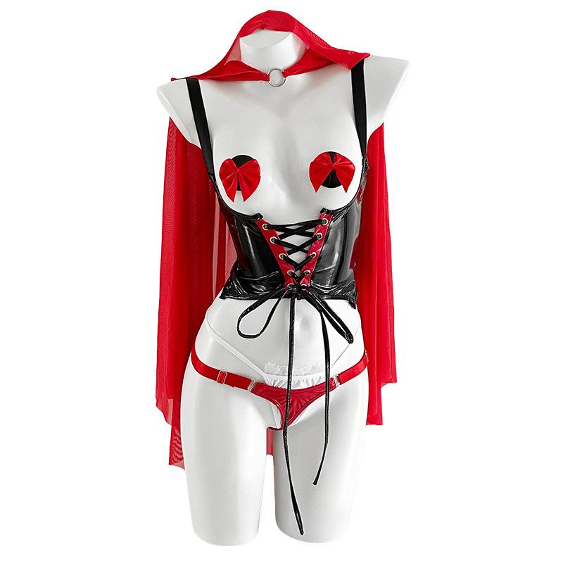Anime Little Red Riding Hood Sexy Lingerie Cosplay Costume Women Open Bra Crotchless Bodysuit Erotic Nightdress