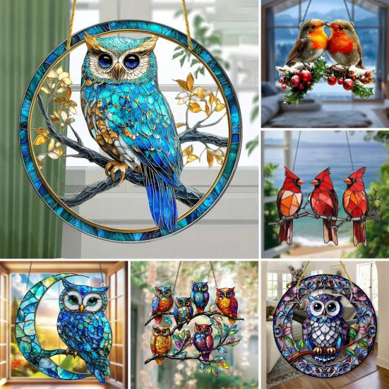 Met een charmant dubbel uilontwerp in blauw en wit, staan deze uilen zij aan zij met levendige uitdrukkingen en gedetailleerde vederstructuren.. Hang deze zonnevanger eenvoudig met de meegeleverde massief metalen ketting aan een zonnig raam of muur.. Verhoog de stijl van uw huis met deze hanglamp die moeiteloos verschillende ruimtes en afmetingen aanvult.