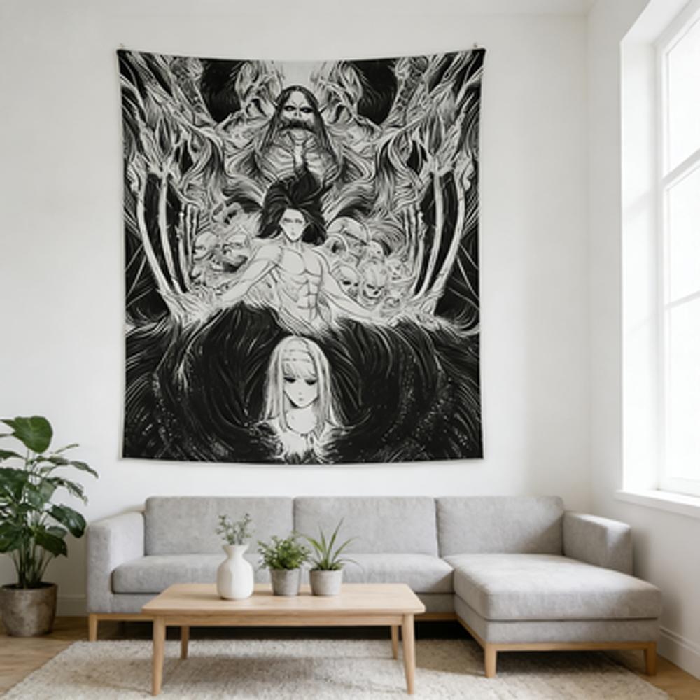 Retro Style Japanese Anime 2D Poster Tapestry Wall Hanging Cover Cloth Attack on Titan Theme Decorative Art for Home