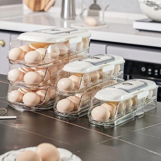 Automatic Rolling Egg Holder 1/2/3-Tier Kitchen Fridge Fresh Egg Storage Rack Plastic Egg Organizer Container Dispenser with Handle — bestel goedkoop online bij Joom webshop