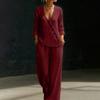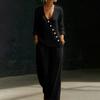 Women's Color Temperament Loose V-neck Button Shirt Wide Leg Pants Two-piece Set