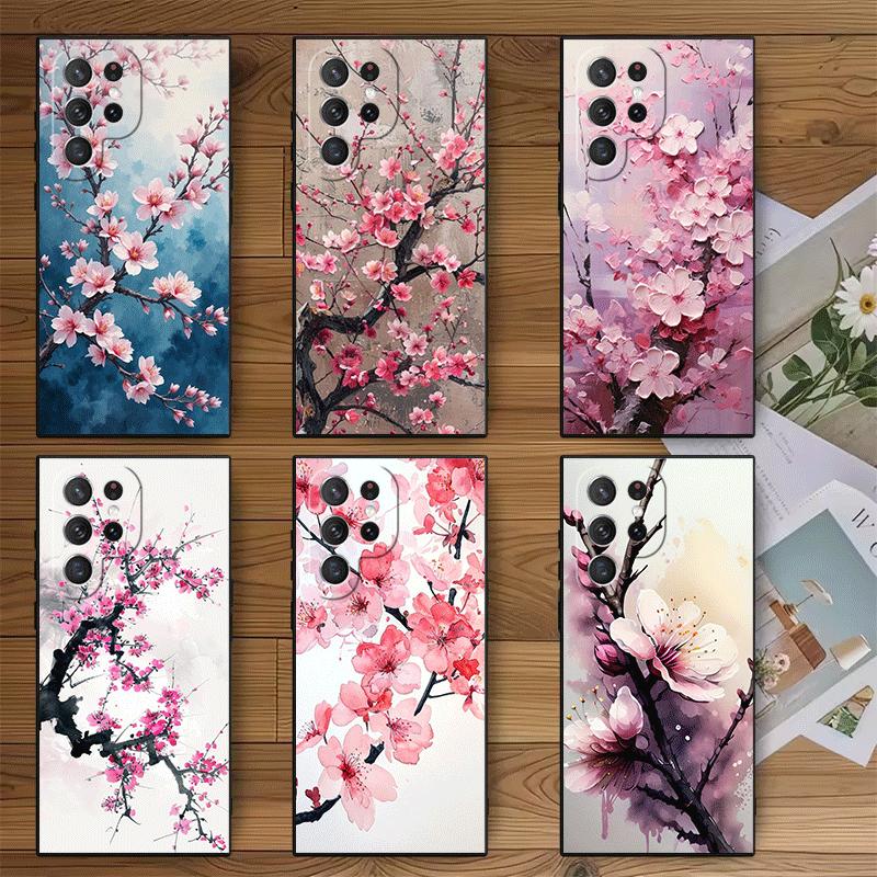 Cherry Blossom Sakura Fashion Soft Phone Case for Samsung Galaxy S26 S25 Edge S24 Ultra S23 Plus S22 S21 FE S20 Black Cover Back
