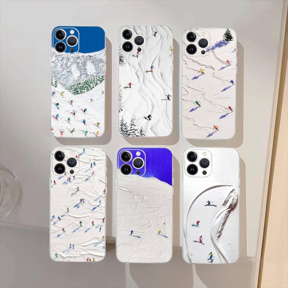 Skiing sports art oil painting style Phone Case For iPhone17,16,15,14,13,12,11 Plus,Pro Max,Soft Silicone Transparent Cover — bestel goedkoop online bij Joom webshop