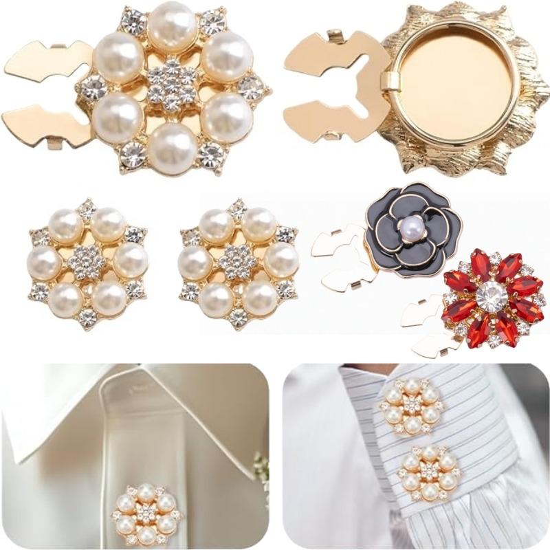 Crystal Pearl Button Covers For Women Blouses Detachable Clip-On Shirt Coat Decorative Buttons Diy Sewing Buttons Holiday Decor