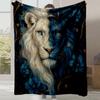 1pc Luxurious Lion King Print Plush Fleece Blanket - Blue & Golden White Lion Mane & paws, All-Season Soft Bedspread for