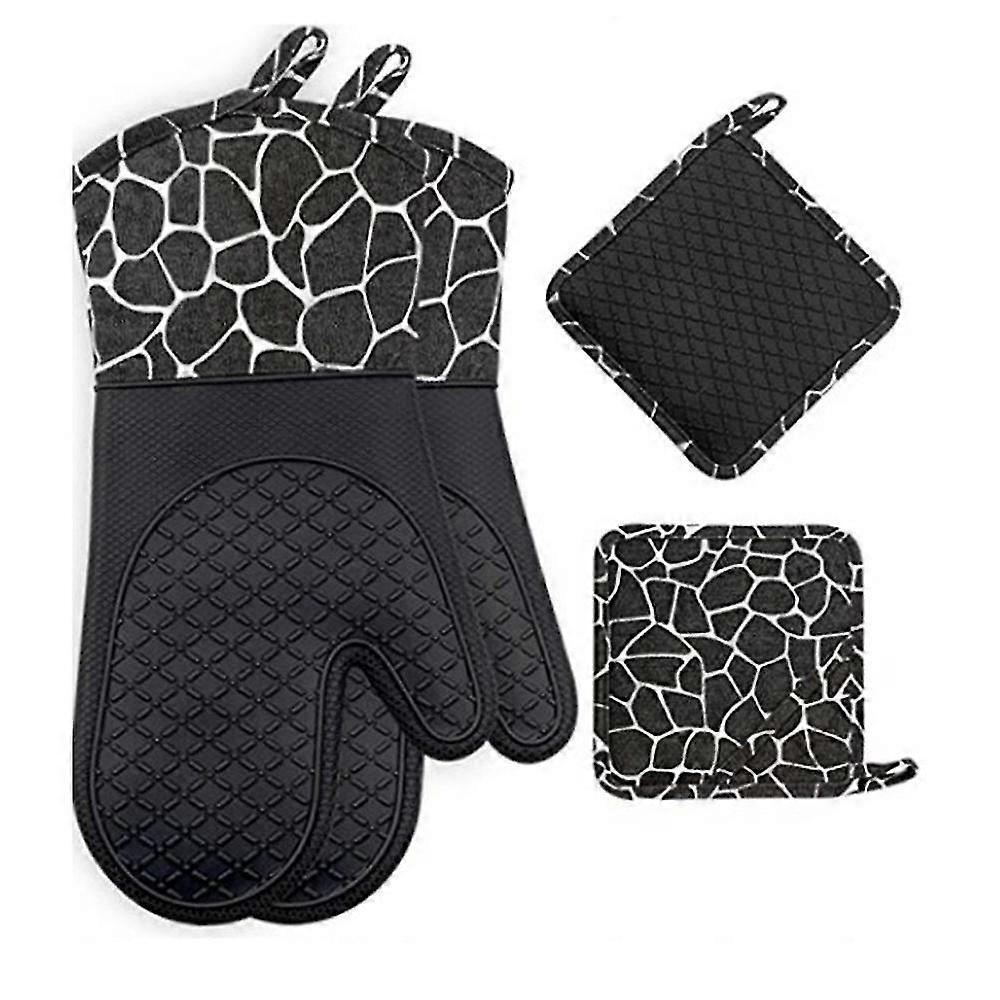 4 Pcs Silicone Oven Mitts And Pot Holders Set (black)