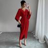 Summer New Style Pure Erotic and Laid-back Lace-up Knot-cut Waist Cinched Figure-hugging Sexy V-neck Dress
