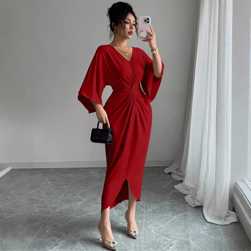 Summer New Style Pure Erotic and Laid-back Lace-up Knot-cut Waist Cinched Figure-hugging Sexy V-neck Dress — bestel goedkoop online bij Joom webshop