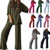 Women's Casual Top Wide Leg Pants Set Cotton Linen Pants Top Two-piece Set