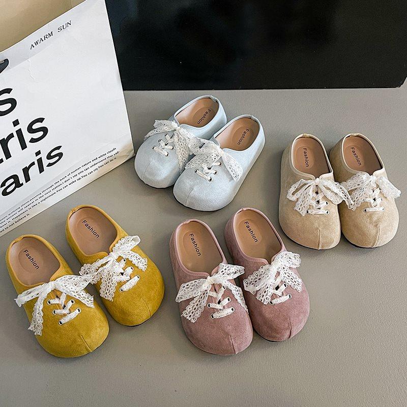 Versatile Bow Bag Head Half Slippers Women'S Outer Wear French Retro Birkenstocks Lace Platform Spring