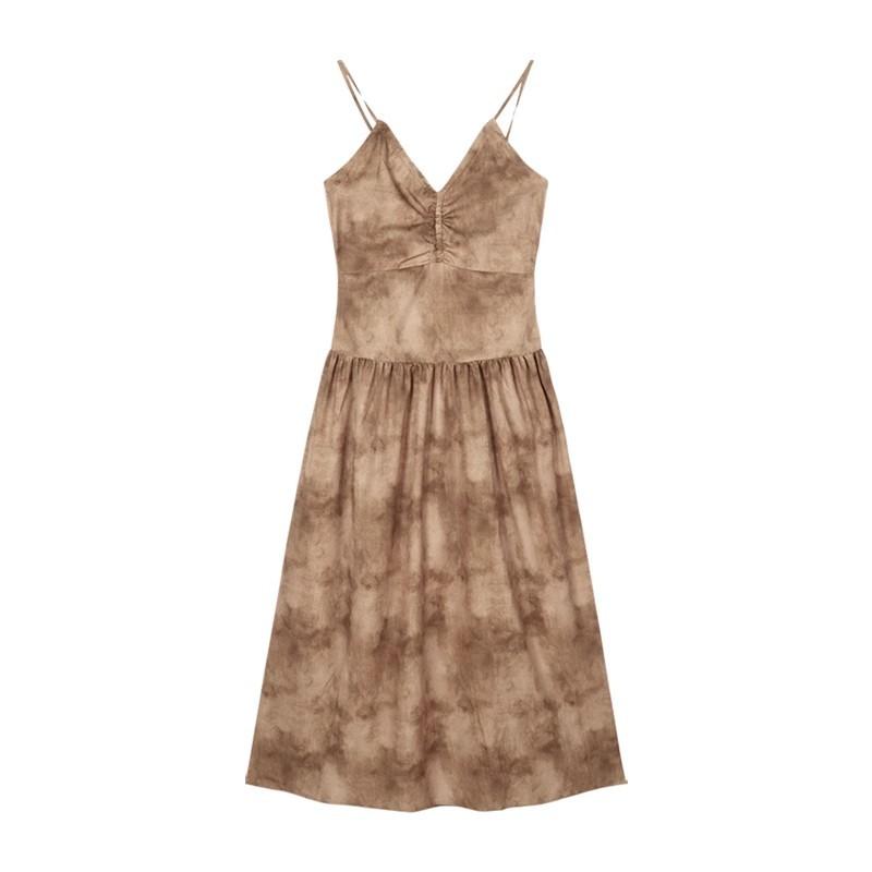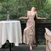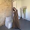 New Chinese-style neck sling v-neck dress women's summer backless waist sexy long dress pure desire coffee color a-word skirt