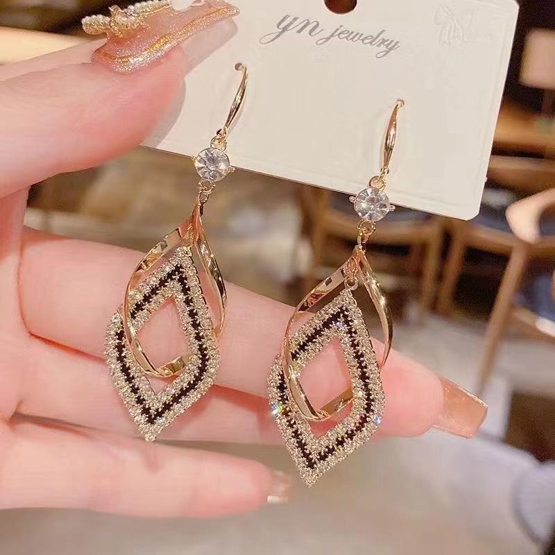 Full diamond temperament, geometric earrings, high-end European and American party earrings, women's earrings, rhinestones — bestel goedkoop online bij Joom webshop