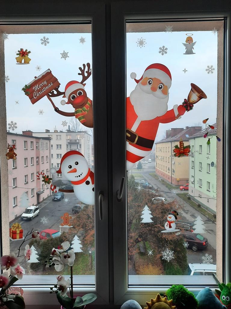 Świąteczne naklejki na prezentację okienną Wymienny Santa Claus Snowman Home Decor Kalkomania