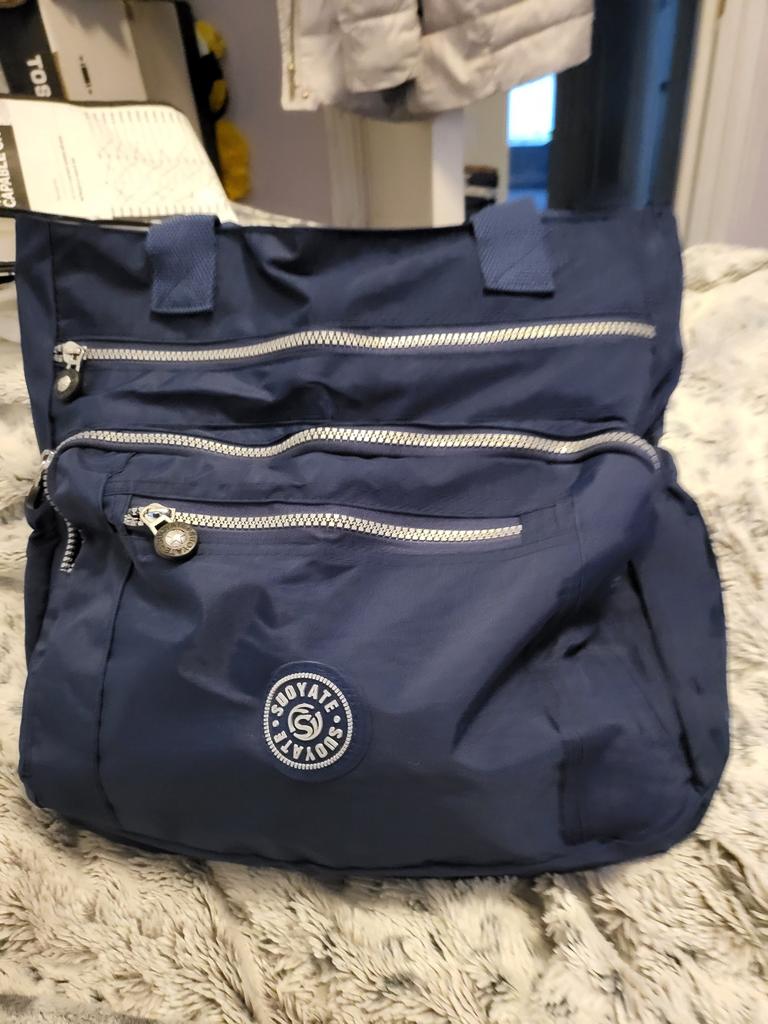 Torebka jest po prostu świetna! Kolor jest ciemnoniebieski, ma wiele kieszeni zapinanych na zamek, wszystkie bardzo duże, rozmiar jest dla mnie idealny, a jakość jest świetna.
