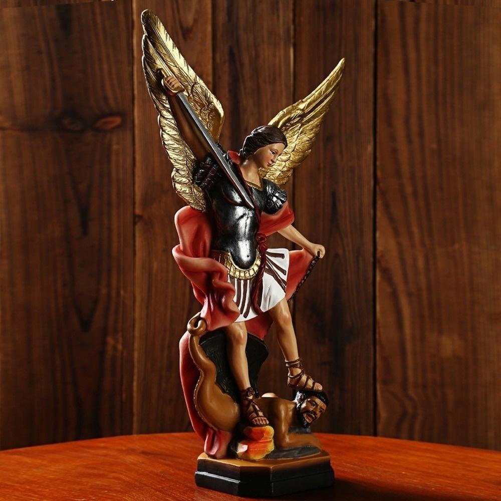 1PC święty anioł Saint Michel Et Le smok statua rysunek dekoracja rzemiosło żywiczne prezenty dekoracja wnętrz — kup artykuł online z bezpłatną dostawą na cały świat!