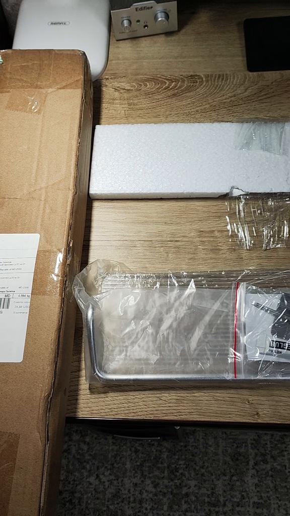 Półka nie ma dolnego metalowego drążka na ręczniki. Sama półka jest z gęstego plastiku, a nie ze szkła. Na zdjęciu produktu i w instrukcji drążek na ręczniki jest.