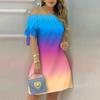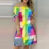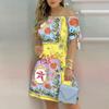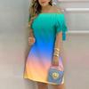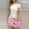 Moda damska Off Shoulder Dress Slash Neck Krótki rękaw Bow Tie Print Sukienki Summer Plus Size Beach Dress — kup artykuł online z bezpłatną dostawą na cały świat!
