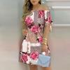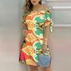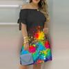 Moda damska Off Shoulder Dress Slash Neck Krótki rękaw Bow Tie Print Sukienki Summer Plus Size Beach Dress