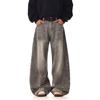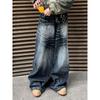 Europejskie i amerykańskie dżinsy uliczne z plamami atramentu dla mężczyzn i kobiet niszowy design z dziurami luźne spodnie z szerokimi nogawkami dla par codzienne spodnie na wszystkie mecze