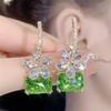 Luksusowe błyszczące kolczyki z cyrkonią AAAA dla kobiet zielony klejnot wysokiej jakości kolczyki damskie Party słuchawki douszne prezent na rocznicę