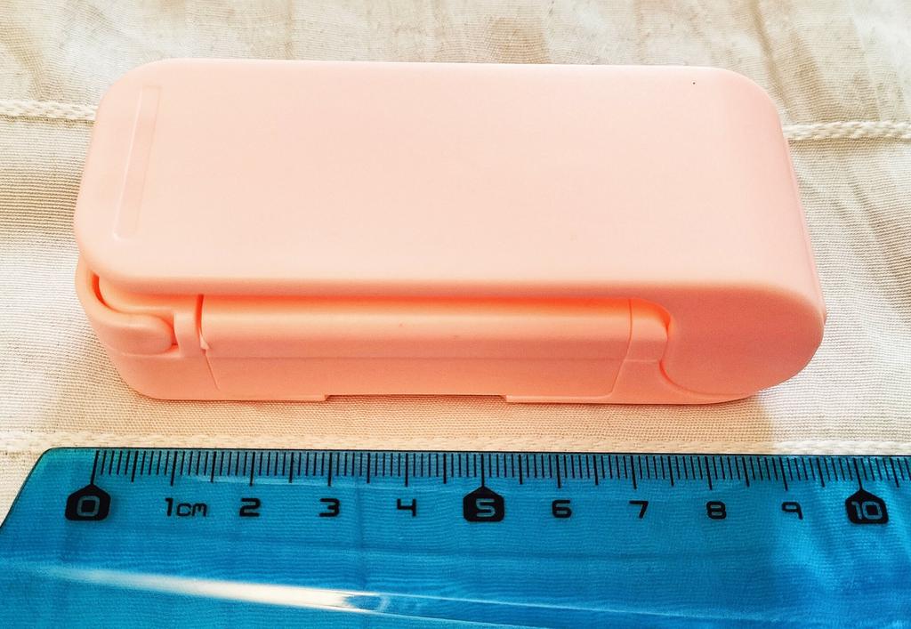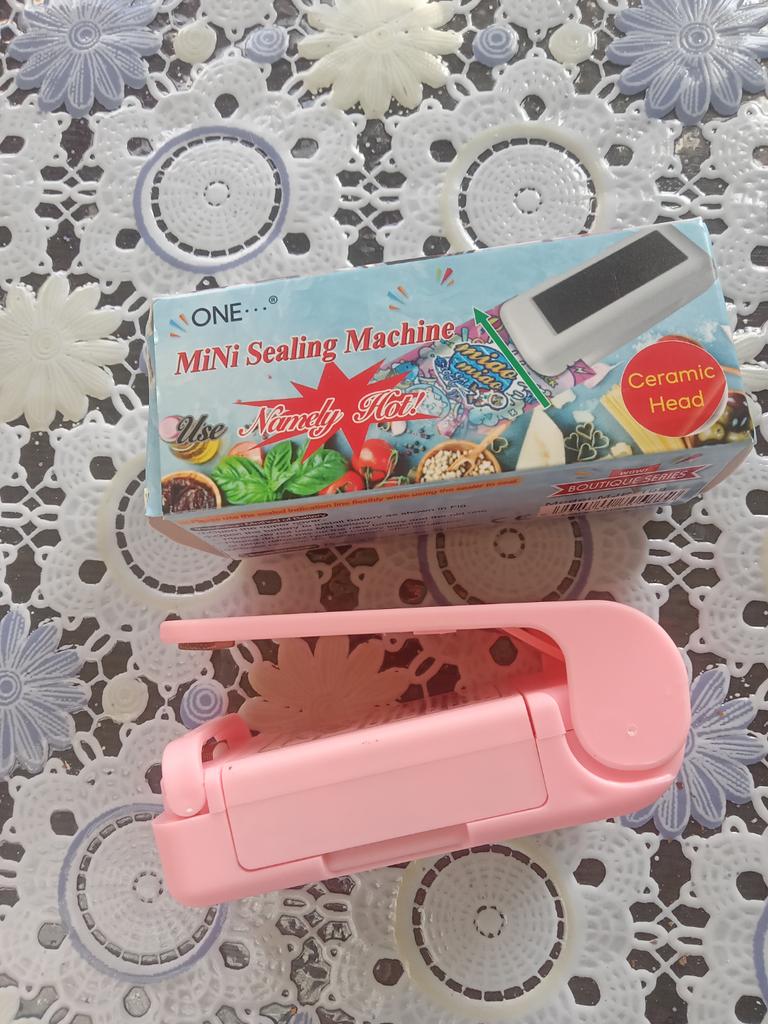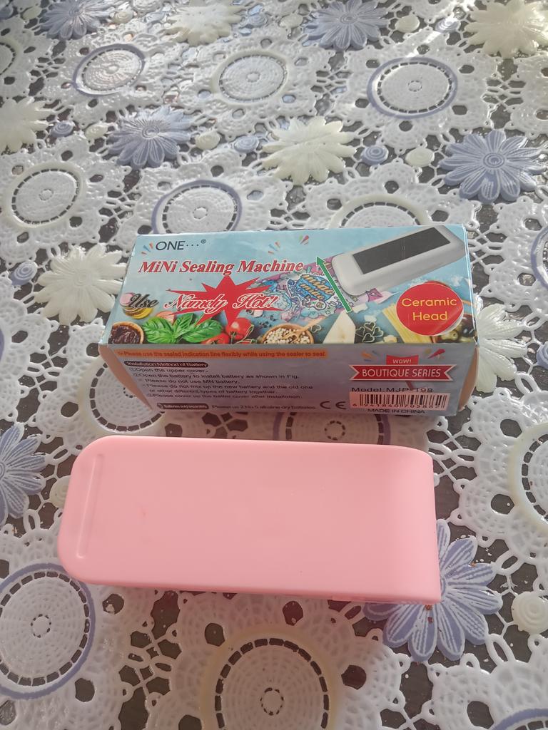 Wszystko jest całe. Podobnie jak na zdjęciu. Brak baterii. Włożyłem własne baterie. Sprawdziłem: działa, dobrze zamyka torebki, ale trzeba się do tego przyzwyczaić)) Jeśli przypadkowo natkniesz się na papierową etykietę, spali się.