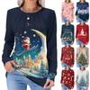 Ladies' Casual And Fashionable Printed Round Neck Long Sleeved Pleated T-shirt Top For Christmas — kup artykuł online z bezpłatną dostawą na cały świat!