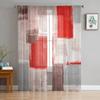 Czerwony Szary Biały Obraz Olejny Abstrakcyjny Geometryczny Przezroczyste Zasłony Dekoracja Pokoju Dziennego Zasłona Okienna Kuchnia Tiul Woal Draperie