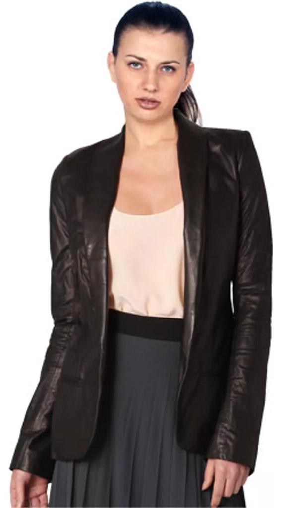 Klasyczny Blezer Skórzany Czarny Prawdziwa Skóra Jagnięca Oryginalny Damski Zapinany Stylowy na Imprezę — kup artykuł online z bezpłatną dostawą na cały świat!