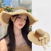 Bowknot Strap Decor Sun Hat Simple Letter Wide Brim Straw Hats Summer Sunshade Beach Hats Suitable for Travel, Seaside Vacation