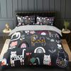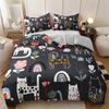 3-częściowy Zestaw Pościeli z Nadrukiem Kota i Kwiatów - Zawiera 1 Poszwę na Kołdrę i 2 Poszewki na Poduszki, Oddychający Poliester, Można Prać w Pralki - Idealny
