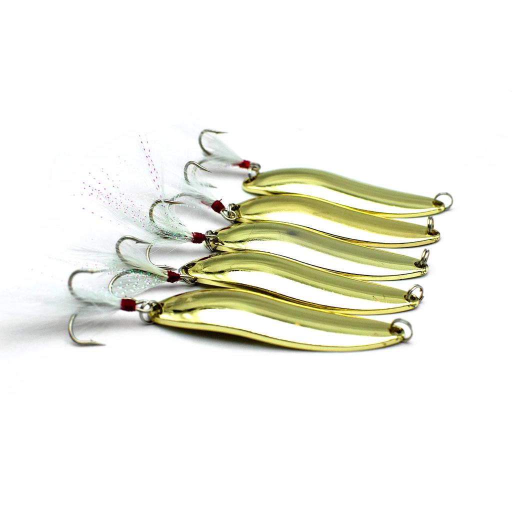 22g przynęta wędkarska łyżka słona woda potrójny haczyk piórkowy twardy metalowy spinnerbait odlewana łyżka złota dla łososia bas 20szt