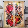 Zasłona Okienna do Pokoju 2 Panele Nowa Szkoła Tatuaż Zasłony Kuchenne Żaluzje Przegroda Tiul do Sypialni Zasłony do Wnętrza Domu