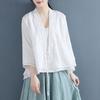 Koszula damska w stylu etnicznym, letnia, z guzikami w kształcie dysku, haftowana, z rękawami trzy czwarte, jednolitym kolorem, kardigan, bluzka w stylu chińskim