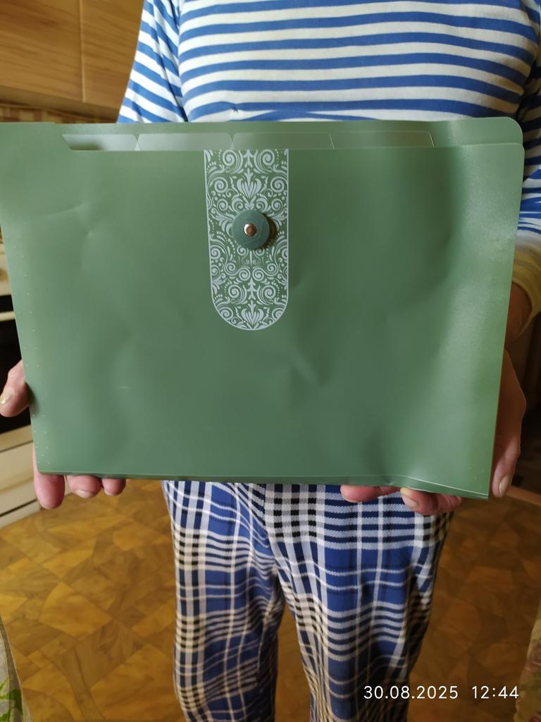 Teczka na dokumenty A4 harmonijkowa z 12 przegródkami. Wcześniej brałam takie teczki na długość dokumentów. Teraz wzięłam na szerokość. Bardzo wygodne przechowywanie. Można przechowywać rachunki, dokumenty, rysunki. Ta przyszła trochę pognieciona. Trzeba położyć pod obciążeniem do wyprostowania.