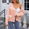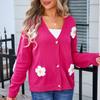 Jesienno-zimowy damski sweter rozpinany na guziki, dzianinowy kardigan w kwiaty, modny