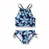 Summer Girls Swimsuit Hanging Neck Suspender Floral Split Girls Small Medium Large Children High Waist Swimsuit