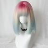 Krótkie proste różowe gradientowe niebieskie peruki z grzywką Naturalna peruka syntetyczna dla kobiet Codzienna peruka Cosplay Lolita Party