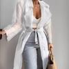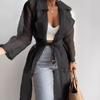 Jackets For Womens Mesh Transparent Overcoat Long Sleeve Buttoned Coat With Belt Turndown Collar Light Weight Long Jackets — kup artykuł online z bezpłatną dostawą na cały świat!