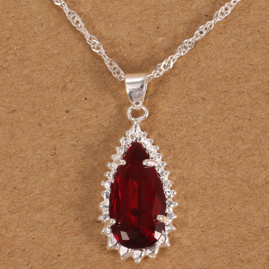 Inkrustowany rubinowy wisiorek w kształcie gruszki z posrebrzanym łańcuszkiem S925 o splocie podwójnej fali wodnej — kup artykuł online z bezpłatną dostawą na cały świat!
