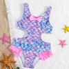 New Girls' Off-Shoulder Ruffle Mermaid One-Piece Swimsuit