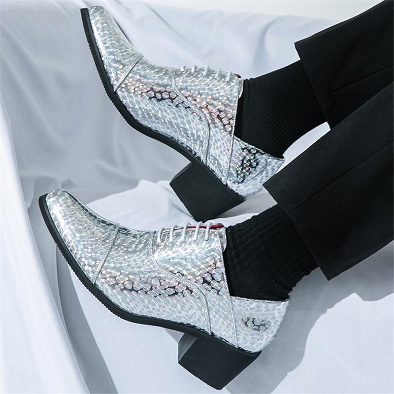 Nowe Męskie Szpiczaste Srebrne Złote Niebieskie Brokatowe Lakierowane Skórzane Sukienkowe Codzienne Buty Ślubne Buty na Bal Maturalny Zapatos Hombre