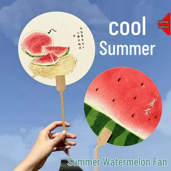 Rabat dla nowych przybyszów: Ręcznie malowany wachlarz arbuzowy - Przenośny, Kreatywny styl chiński na lato