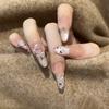 Blush cat eye milkshake gradual change flash diamond girl bow removable manicure 30 pieces