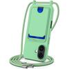 Etui na iPhone 17 z płynnego silikonu, z uchwytem na karty, tylna osłona telefonu ze smyczą