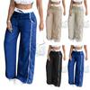 Damskie luźne szerokie spodnie dresowe, casualowe, ze sznurkiem, elastyczny pas, blok kolorów, odzież sportowa